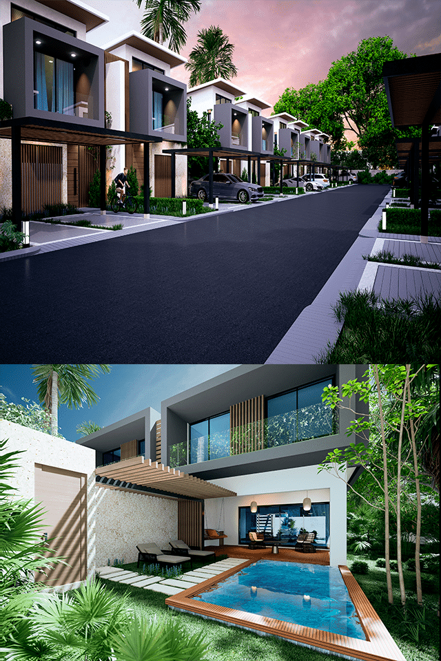 Sand Village es un desarrollo inmobiliario de Villas Duplex de lujos a otro nivel con diseños abiertos y de vanguardia, el cual se encuentra localizado en Vista Cana, a 10 minutos del Aeropuerto Internacional de Punta Cana en la República Dominicana y a 5 minutos de las más bellas playas de aguas turquesas del Caribe.
